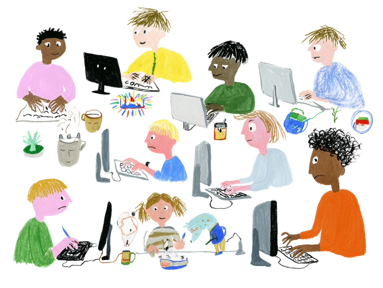 소규모 그룹, 12-16주 동안 주간 라이브 수업. 실시간 토론, 또래 협업, 그리고 코호트 동안 누적되는 프로젝트.