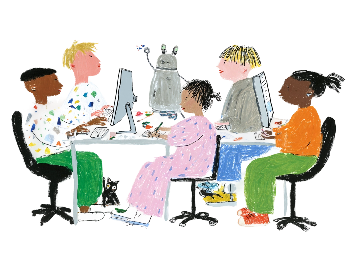 Decomposition and pattern recognition through visual programming (Scratch). Students learn to break down stories, games, and everyday processes into logical steps.